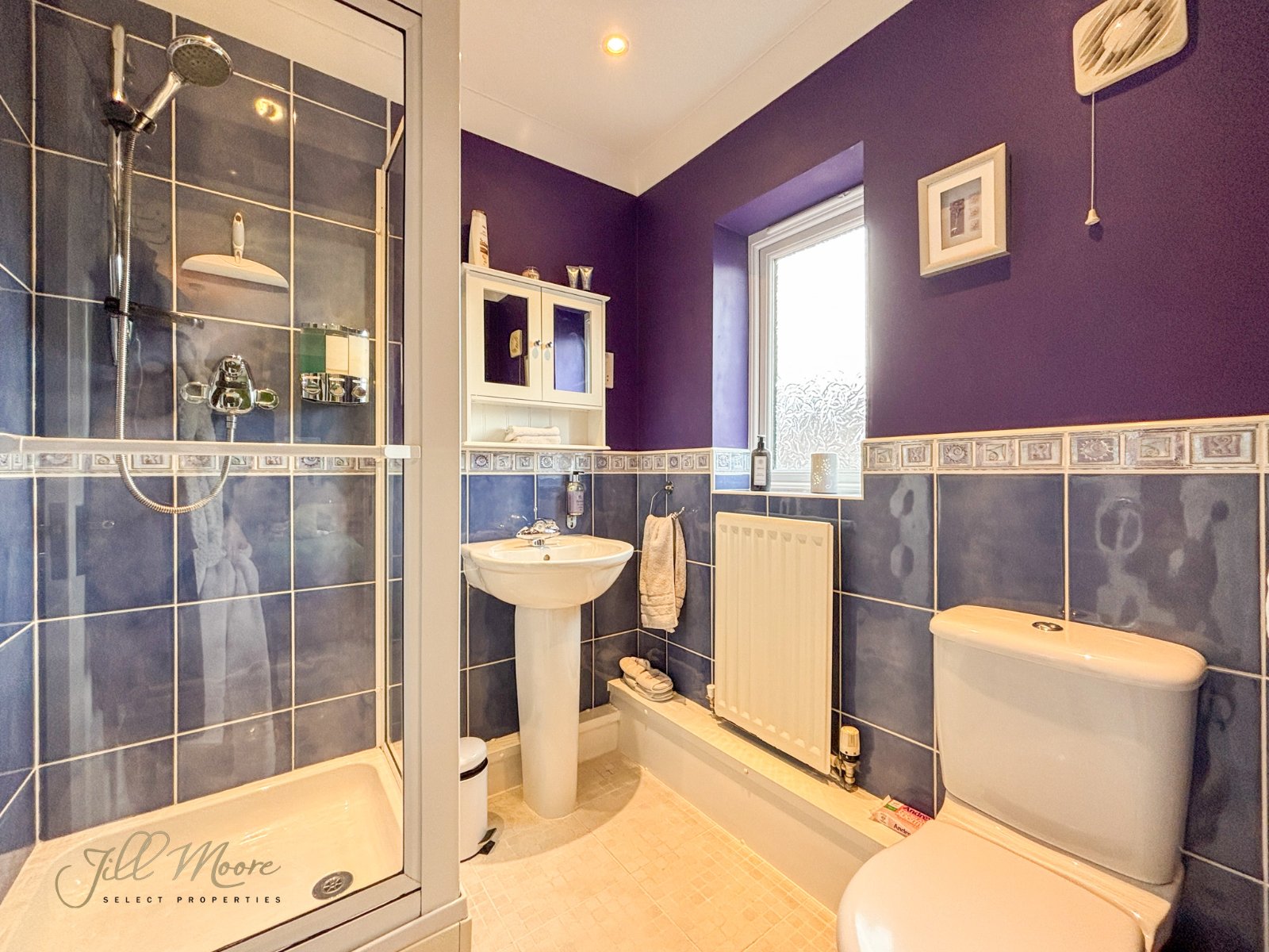 The en-suite offers part-tiled walls, walk in shower cubicle, hand wash basin, toilet, towel rail/radiator and double glazed window.