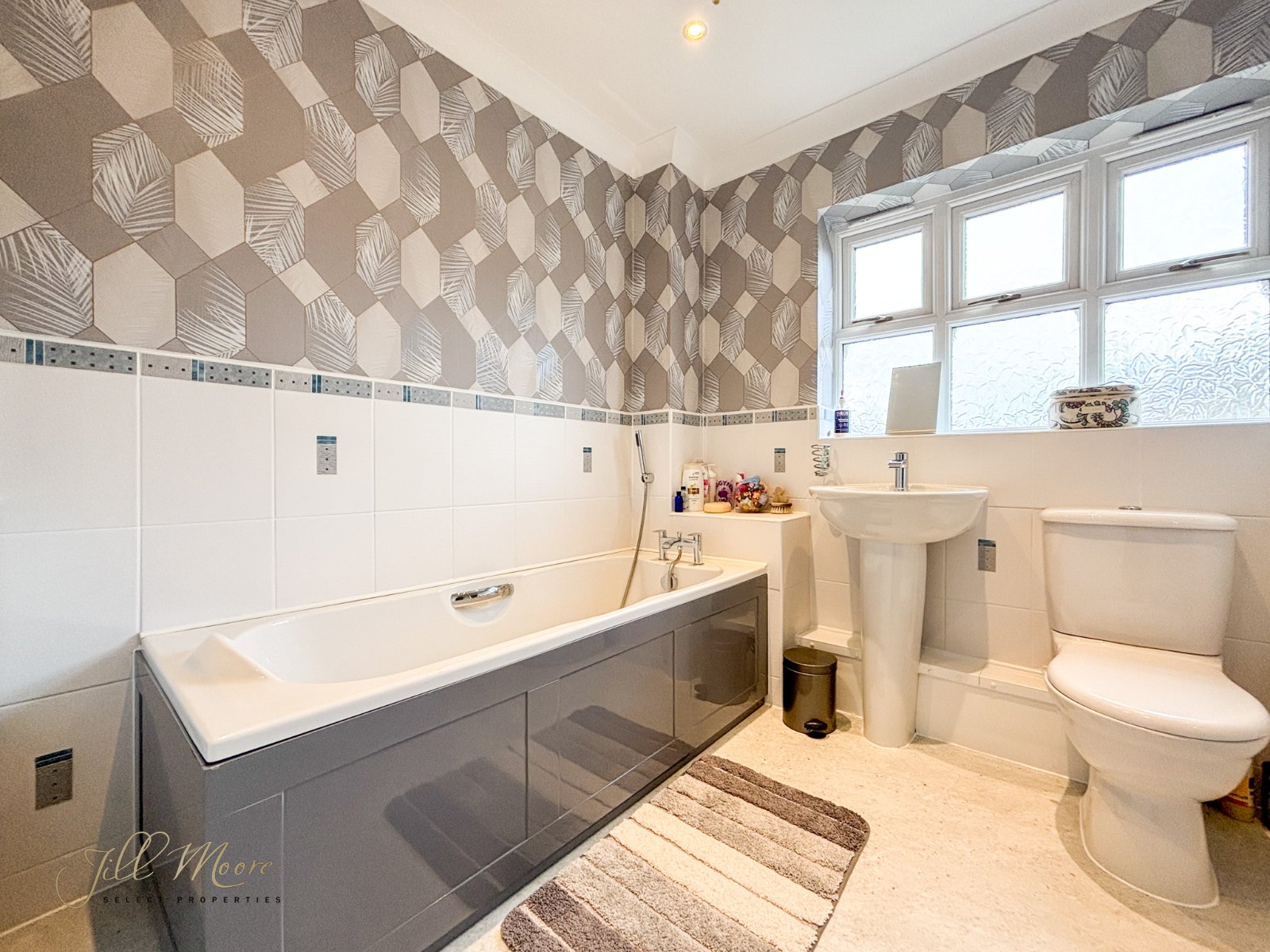 The recently upgraded family bathroom is complete with neutral tiled walls and floors, double glazed privacy windows, towel rail/radiator, bath with mixer shower, hand wash basin and w/c.