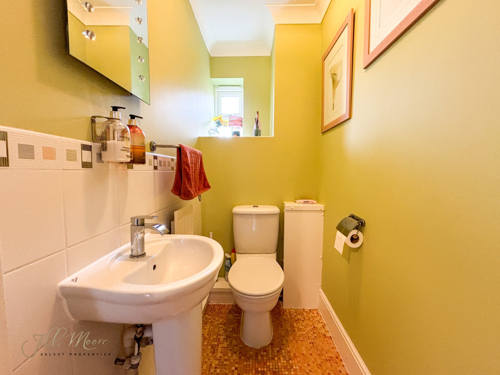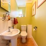 The W/C offers neutral walls, hand wash basin, double glazed window and toilet.