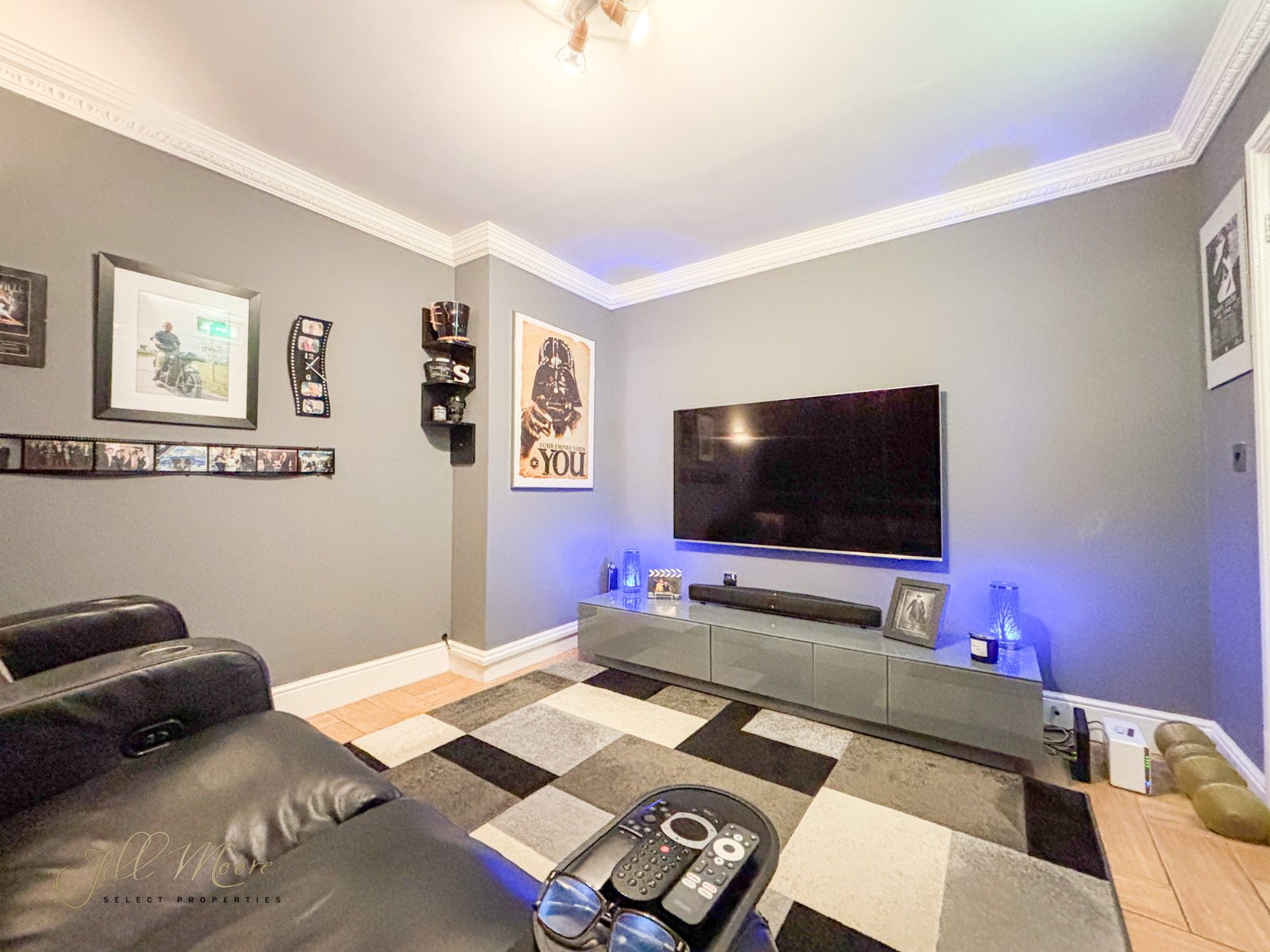 The good-sized second reception room currently used as a home cinema, is generous in size and offers double glazed windows, neutral walls, tiled flooring, flooring and radiator.
