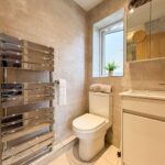 The en-suite features large walk in shower cubicle, towel rail/radiator, double glazed window, low level hand wash basin and toilet.